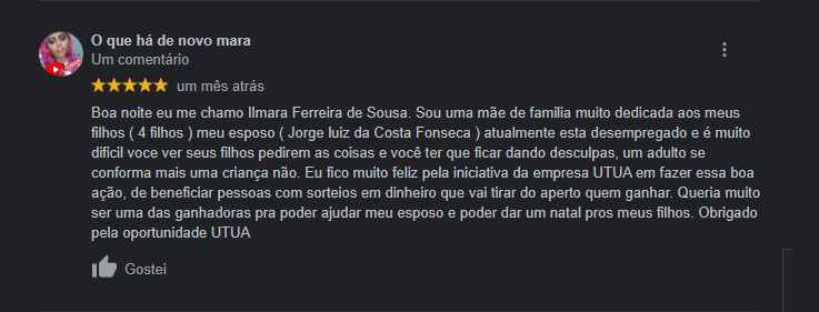 Olha, caso você já não me conheça, eu também sou coordenador dos sorteios do Clube UTUA, e nós fazemos sorteios de 3 mil reais, ao vivo, toda quarta, as 20h, no nosso canal do UTUA, no YouTube. Então, caso queira tirar a prova, ou até participar (porque pra participar é 100% grátis), pode pesquisar as nossas redes sociais e ver depoimentos das mais de 50 pessoas que já ganharam nossos sorteios.